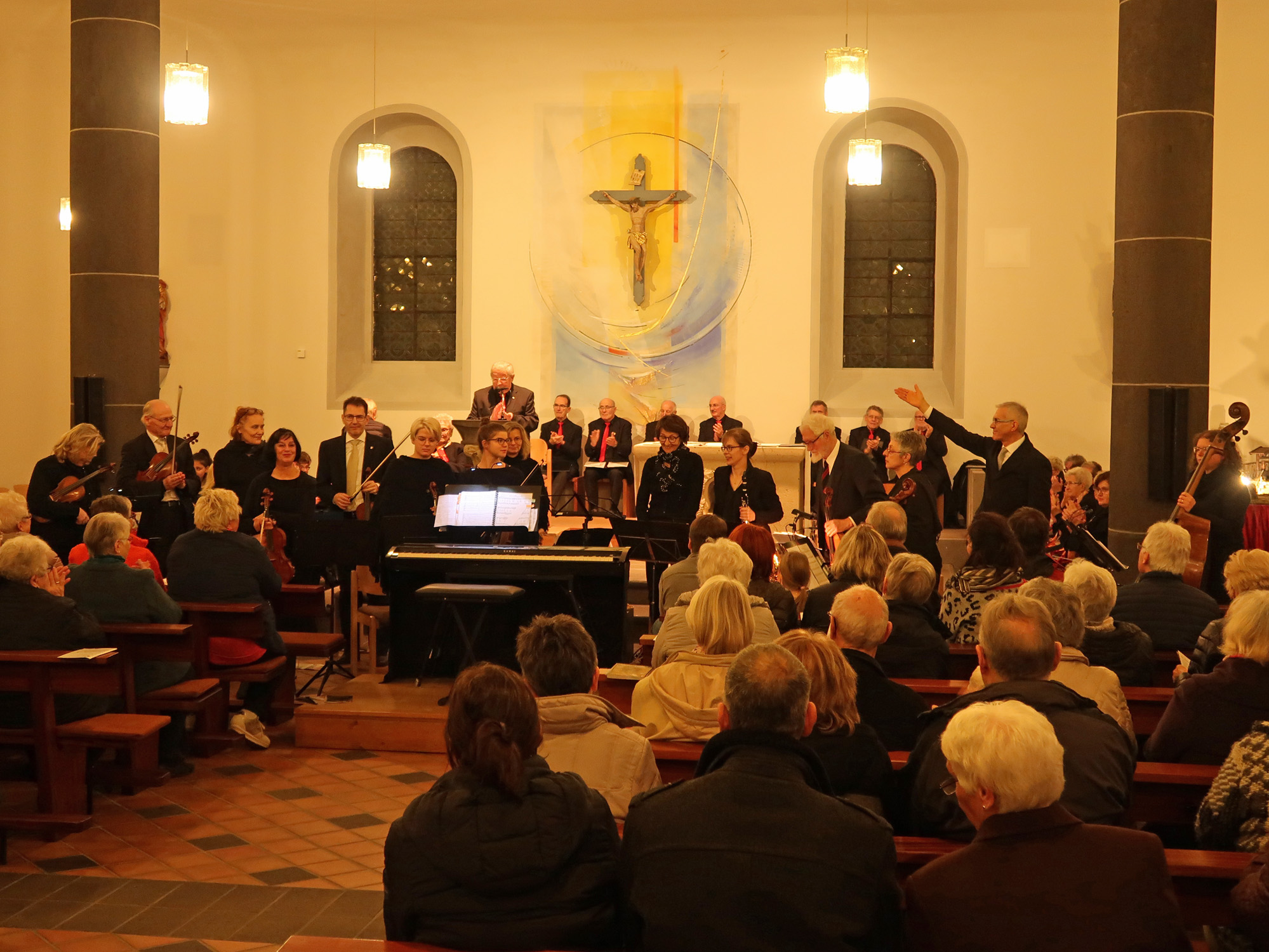 Die Kirche war gut besucht, als am 3. Adventssonntag der Kirchenchor Lehmen und das Städtische Orchester Mayen das Adventskonzert mit dem Adventsteil aus dem Weihnachtsoratorium des ehemaligen Fuldaer Domkapellmeisters Heinrich Fidelis Müller eröffneten. Das Lied "O Heiland, reiß die Himmel auf" bildet den Kern dieses Adventsteils und greift inhaltlich den Ruf des Propheten Jesaja nach Heil, Rettung und Erlösung auf. Hieran konnte Pfarrer Stein in seiner Adventsmeditation anknüpfen.
