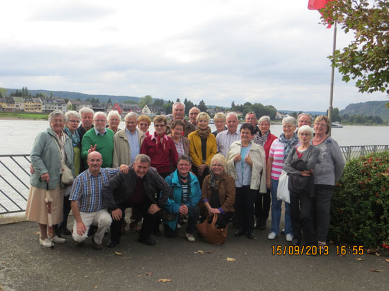 Chorausflug nach Bonn und Linz Am Sonntag, den 15.09.20013 trafen sich die Mitglieder und Freunde des Kirchenchores zu ihrem Jahresausflug. Erstes Ziel war Bonn mit seiner Museumsmeile. Im Haus der Geschichte wurde zunächst die Sonderausstellung "The American Way - Die USA in Deutschland" besucht. Anschließend wurde die Gruppe von zwei kompetenten Begleitern durch über 100 Jahre Deutscher Geschichte geführt. Die sehr interessanten Eindrücke in diesem Museum fanden großen Beifall bei allen Besuchern. Nach dem Mittagessen un einem kurzen Umtrunk wurde die Fahrt fortgesetzt. Es ging auf die andere Rheinseite nach Linz. In dem kleinen Rheinstädtchen war dann genügend Zeit, in einem der vielen kleinen Cafes in den engen Gässchen, mit den sehr liebevoll restaurierten Fachwerkhäusern, Kaffee zu trinken oder Eis zu essen. Nach dem Gruppenfoto am Rhein ging es durch das Neuwieder Becken in die Eifel nach Welling. Mit einem schmackhaften Abendessenklang der diesjährige Ausflug aus. Mit vielen Eindrücken kehrte die Gruppe ins geliebte Moseltal zurück. |